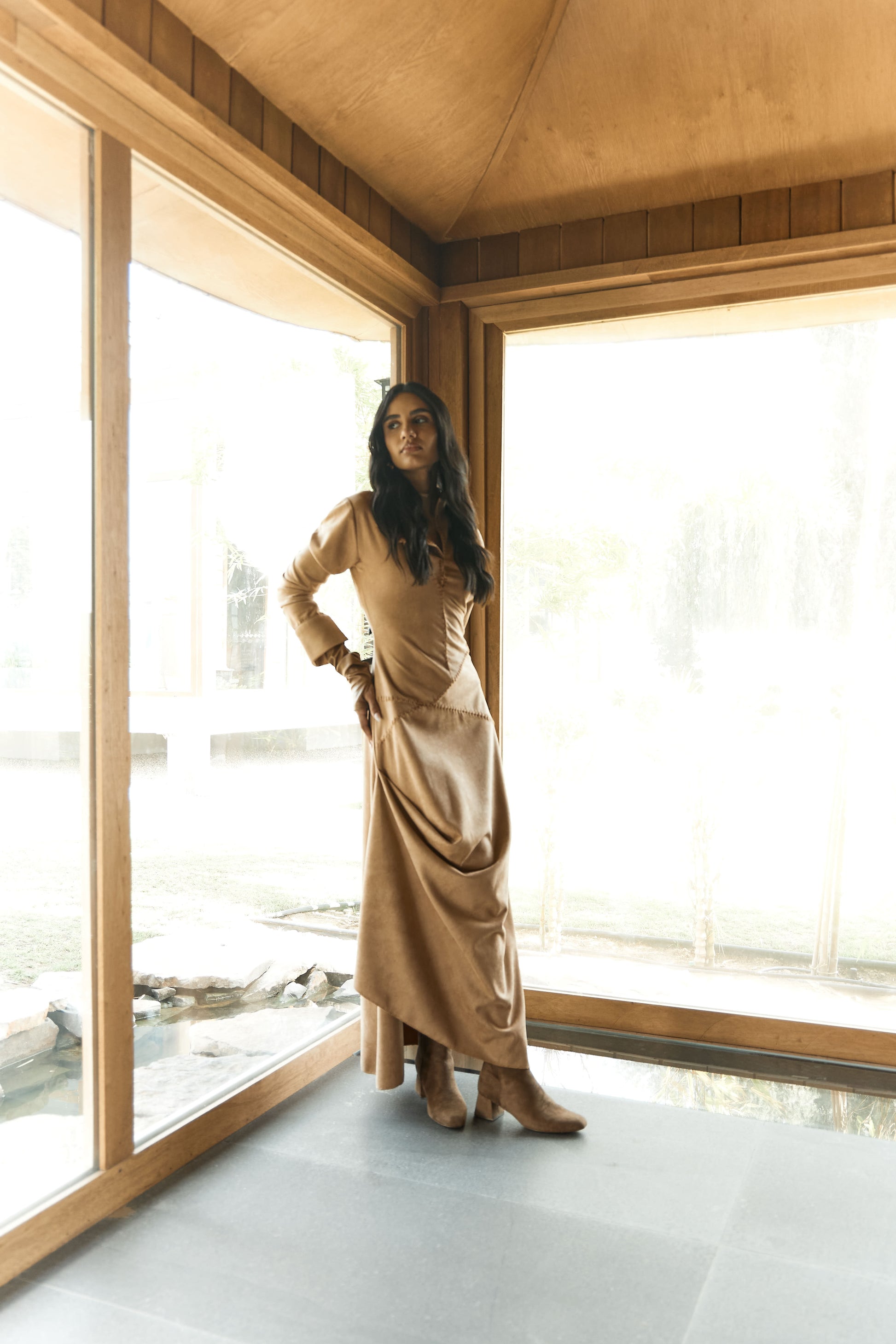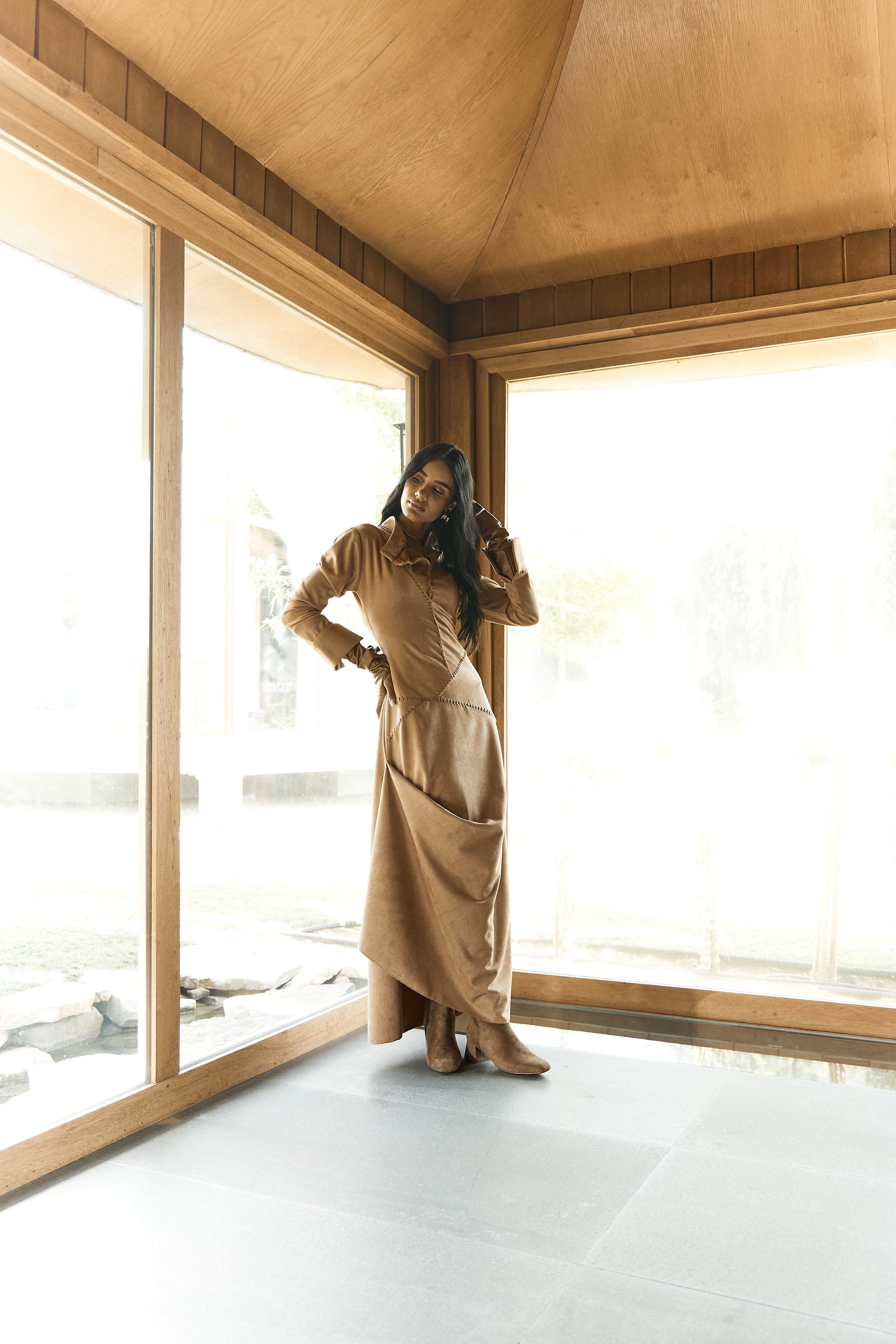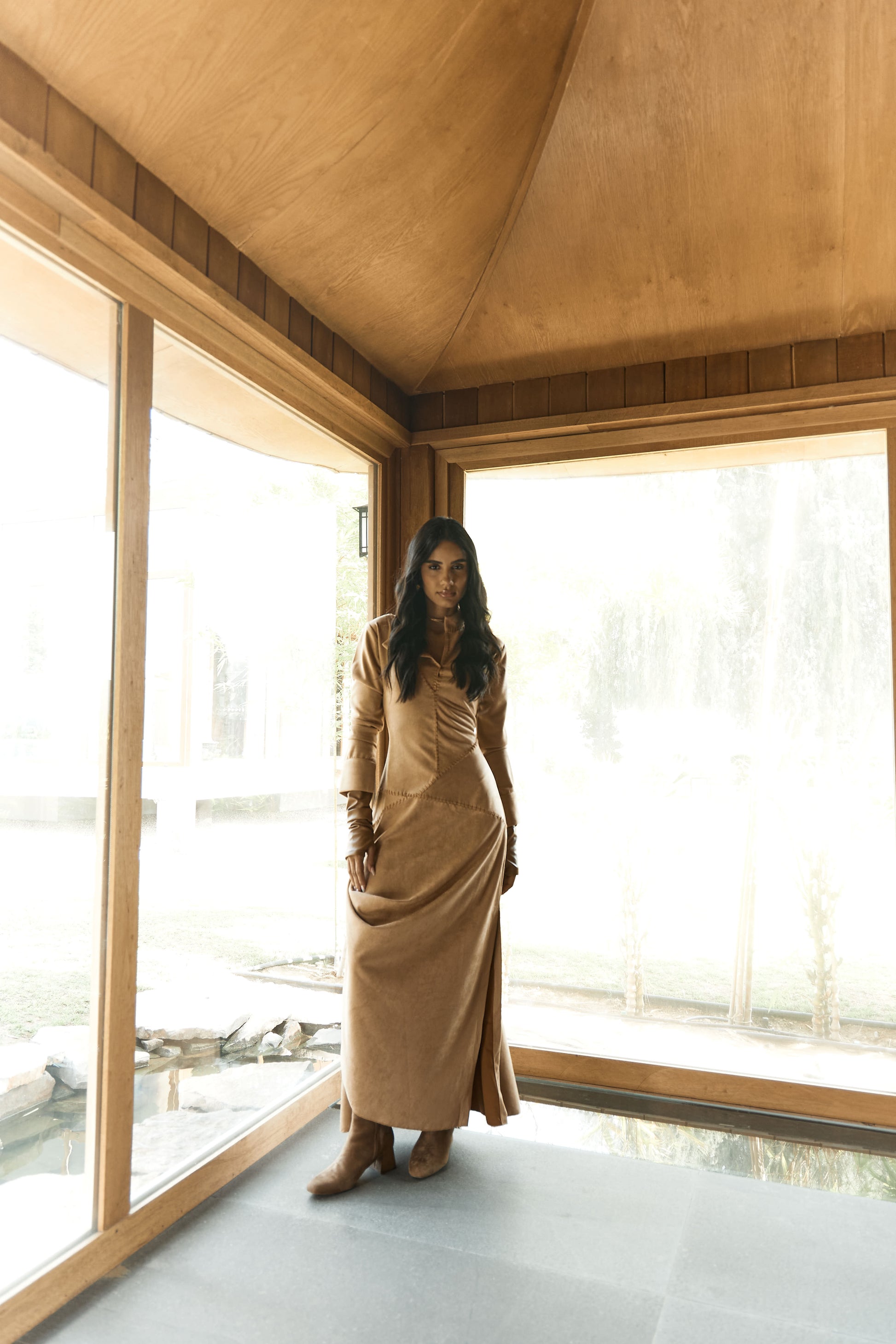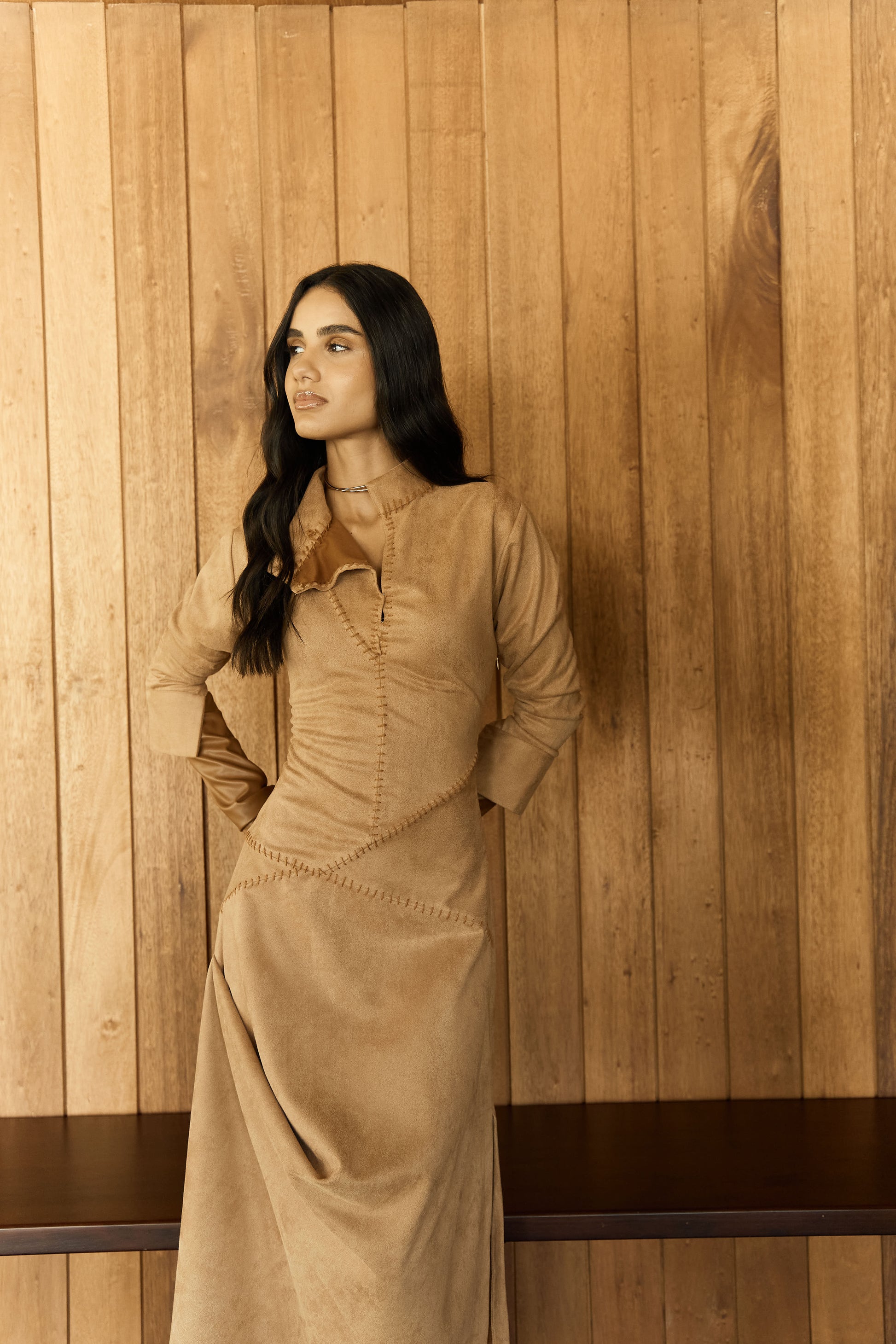 Elegant and flattering, crafted from soft caramel chamois for a chic, timeless look ๐ค